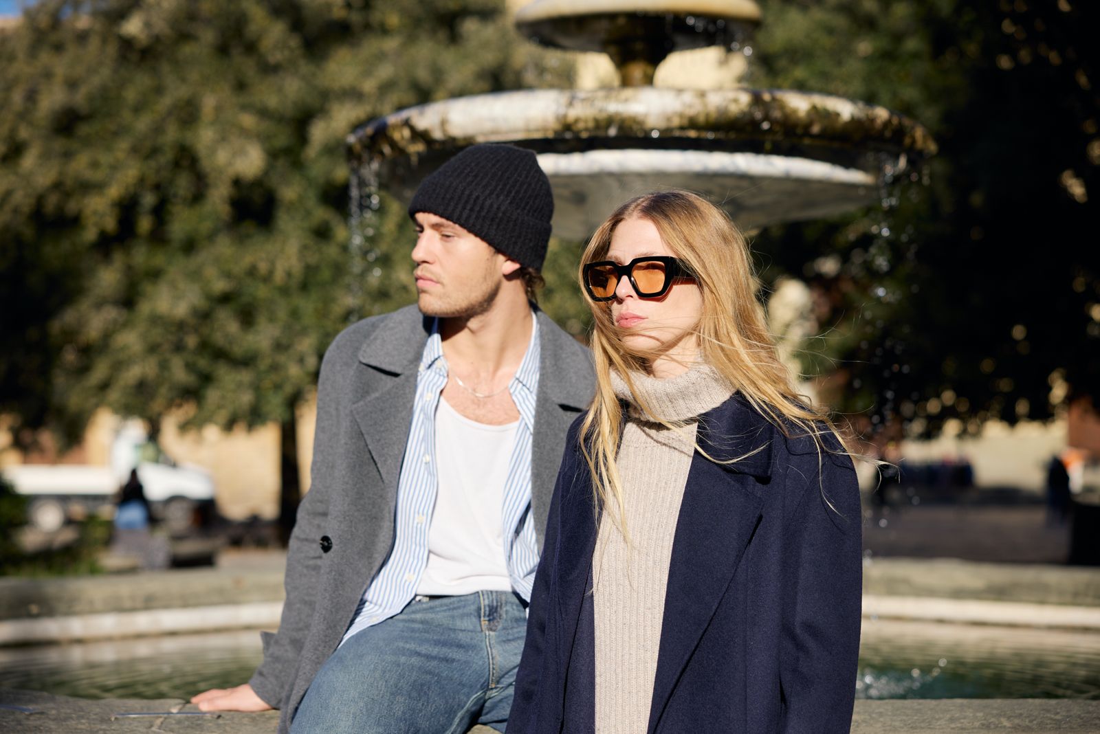 Cappotto lungo tasche a filetto in lana e cashmere arancione