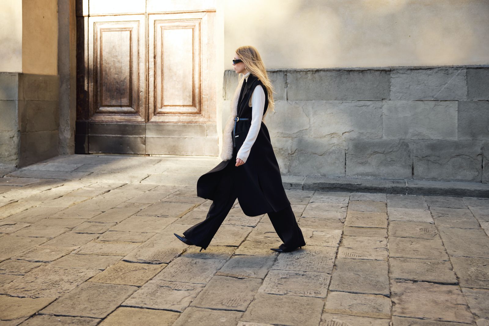 Cappotto midi slim doppiopetto in lana e cashmere nero