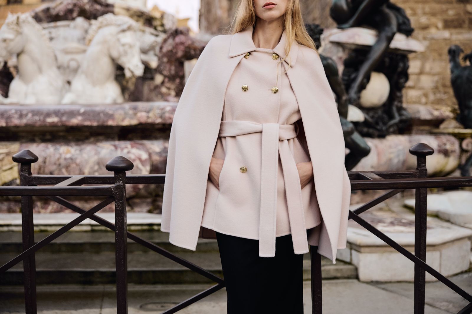 Cappotto lungo tasche applicate in lana e cashmere rosa